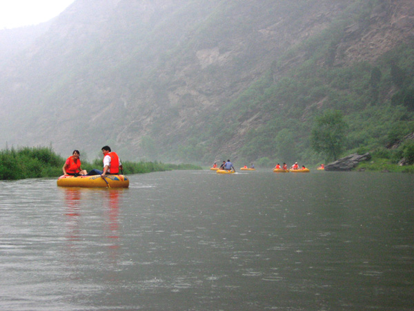 永定河峽谷從官廳水庫攔河大壩順流而下,山高谷深,峰巒疊嶂,俗稱小三峽。有宋代楊家將七郎八虎戰(zhàn)幽州的古戰(zhàn)場,有舊莊窩林區(qū)的奇山異石,有一線天、石橋、木橋、吊索橋,有亞洲第一樓等景觀。豐沙鐵路、官沿公路在永定河峽谷穿山跨河,隧道有100多座,橋梁有40多座。永定河峽谷漂流,號稱萬米漂流。全程約10公里,時速10—15公里,落差約300。峽谷漂流,別開生面,有驚無險,深受廣大游客歡迎。