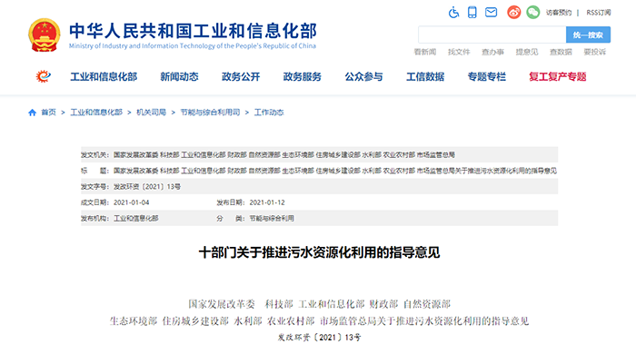 十部門(mén)印發(fā)指導(dǎo)意見(jiàn),加快推進(jìn)污水資源化利用